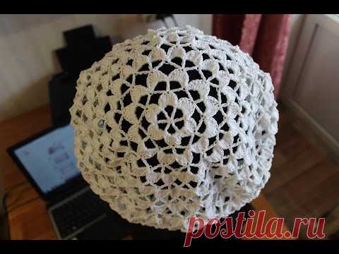 Ажурный летний берет крючком (на объем головы 58 см). Часть 1\2.