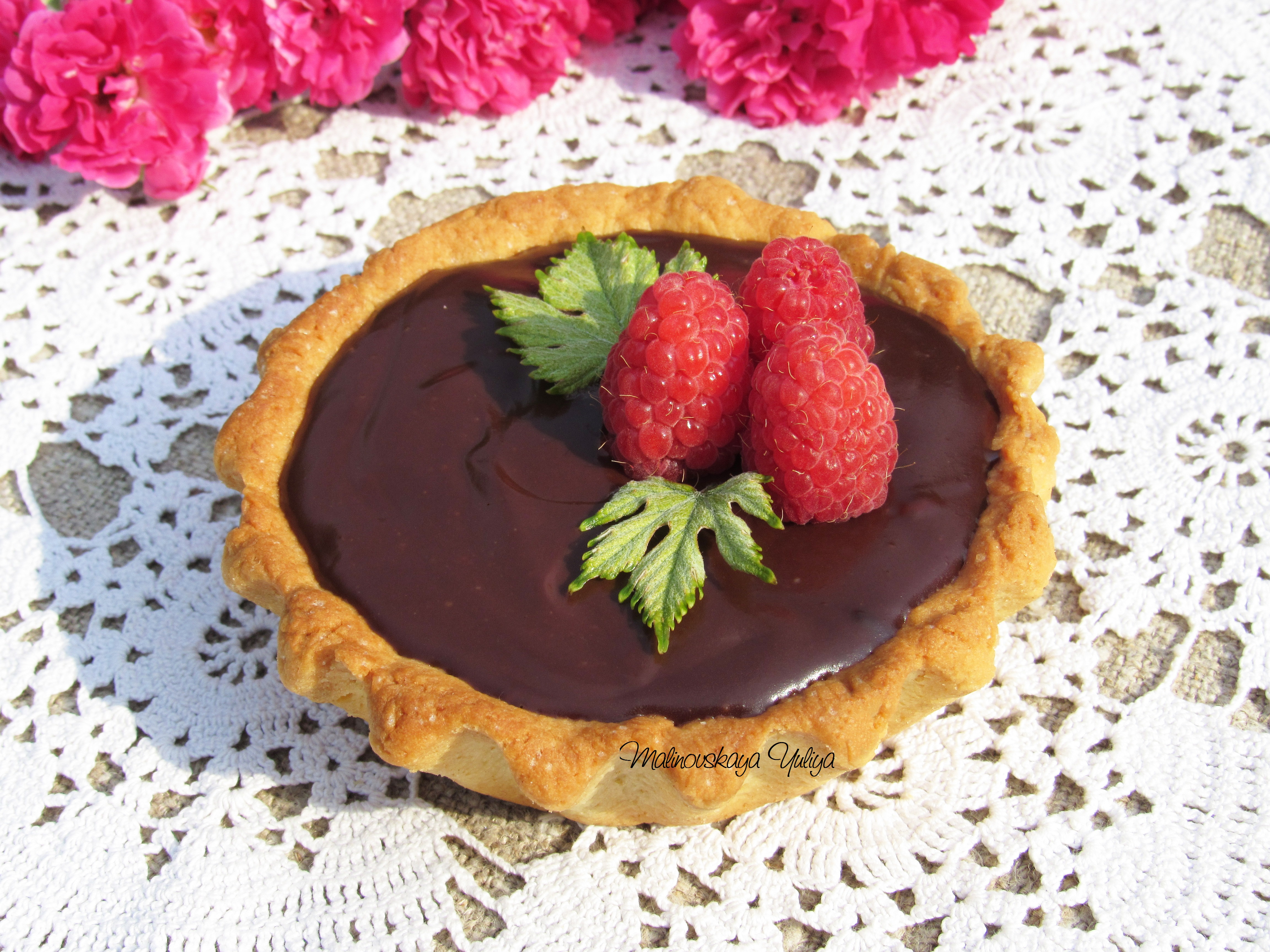 Вкуснейший песочный тарт с малиной и шоколадным кремом!