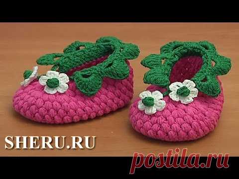 Пинетки малинки крючком Урок 83 часть 2 из 2 How To Crochet Baby Booties