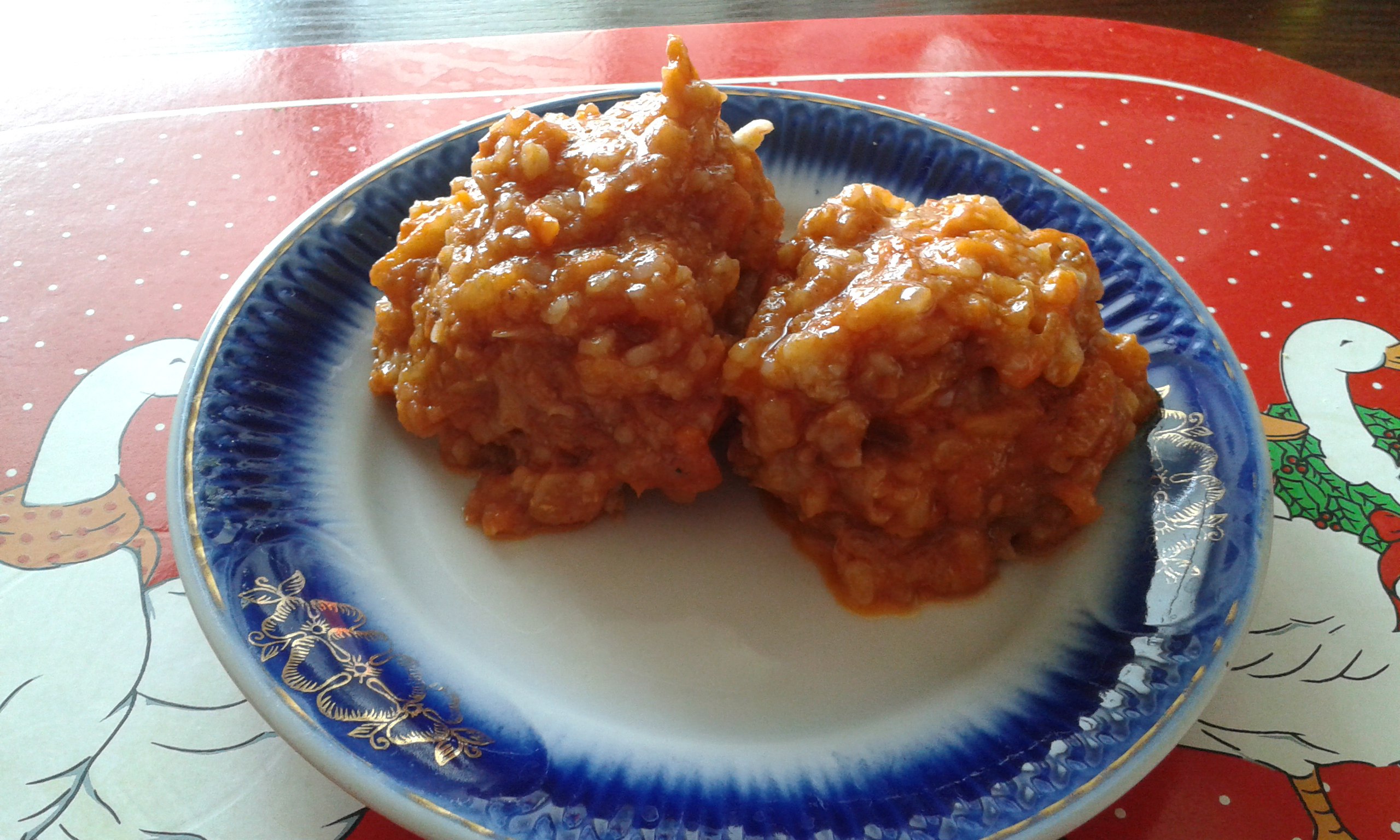Тефтели из гречневой крупы и пекинской капусты, в томатном соусе. (для дней с маслом) Рецепт: Отварить один стакан гречневой крупы до разваривания. Остудить. Добавить в гречку, мелко нарезанную белую часть пекинской капусты, предварительно перетертую с небольшим количеством соли. Сюда же мелко рубленный чеснок 2 зубка, перец черный, (приправы по вкусу) и 1 столовую ложку крахмала. Всю массу вымесить. На сковороде поджарить лук и морковь, добавить томатный сок или томатную ...