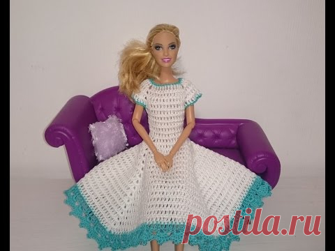 Вязание для кукол крючком Платье с квадратной юбкой - YouTube