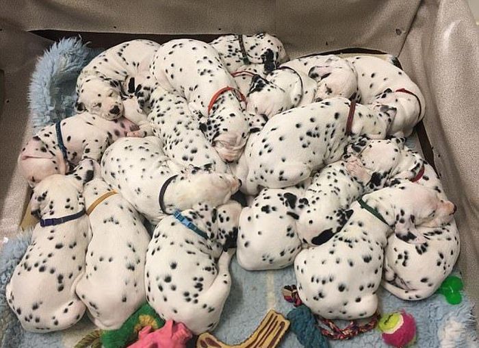 Далматин повторил мировой рекорд (16 фото) | Чёрт побери В австралийском Балларате собака по кличке Майли породы далматин установила рекорд Австралии по количеству щенков и повторила мировой рекорд. У нее родилось сразу 18 щенков. Самое удивительное в этой истории то, что ветеринары говорили заводчице Сесилии Лэнгтон-Бункер, что у ее собаки родится лишь трое щенков.