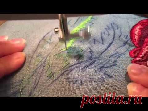 Машинная вышивка. Вышивка гладью листьев Мака. 2 часть. Sticken mit der Nähmaschine.Mohn.Embroidery.