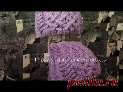 Вязаная шапка с ушками. Вязание спицами. Шапка кошка с косой. Knitting(Hobby)