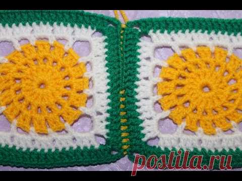 Соединение мотивов крючком. Способ 2 - с изнаночной стороны соединительными столбиками.