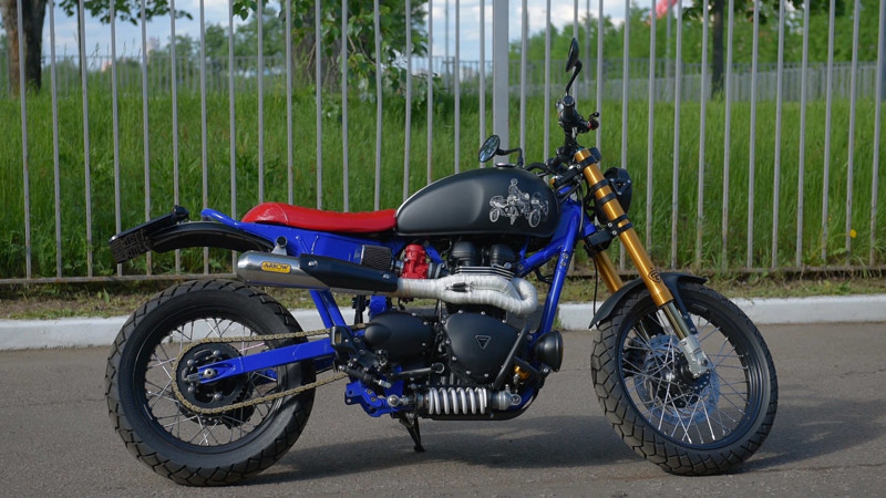 Triumph Scrambler Himself (10 фото) | Чёрт побери Кастом, построенный на базе Triumph Scrambler. Силовую установку оставили в стоке, а вот все остальное изрядно допилили. Причем некоторые переделки не сразу и заметишь за яркой (по мнению некоторых чересчур) окраской. Тем не менее, не так все с ним просто. Если хочется посмотреть про этот мот подробнее, то велкам на мой канал в youtube - #ЧУДОТЕХНИКИ с Георгием Беловым Выглядит ярко, этого не отнять Задняя подвеска передела...