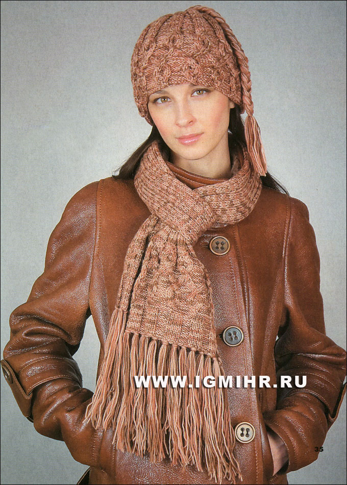 Теплый комплект "Осенняя рапсодия": шапочка и шарф из меланжевой пряжи. Спицы