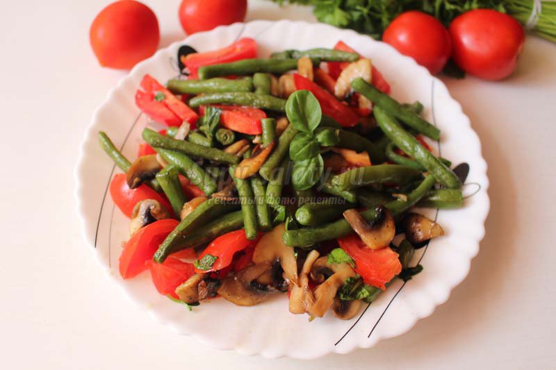 Салат со стручковой фасолью, помидорами и грибами. Рецепт пошаговый с фото