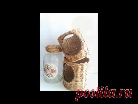 Набор банок. Плетем чехол для банки из газетных трубочек Часть 4