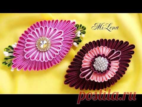 Овальный цветок канзаши / МК / DIY Kanzashi flower / Ribbon flower tutorial