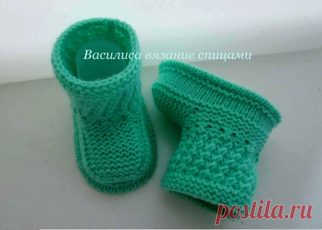 Пинетки спицами рельефный узор //Василиса Видео, как связать пинетки спицами с закругленным носком, узор рельефный