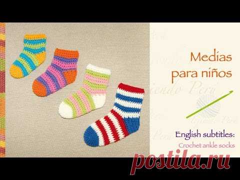 Medias o calcetines tejidas a crochet / English subtitles crochet ankle socks