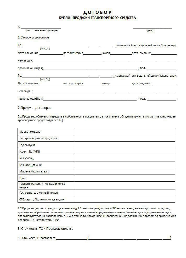 Договор купли продажи автомобиля 2017. Стр 1 из 2