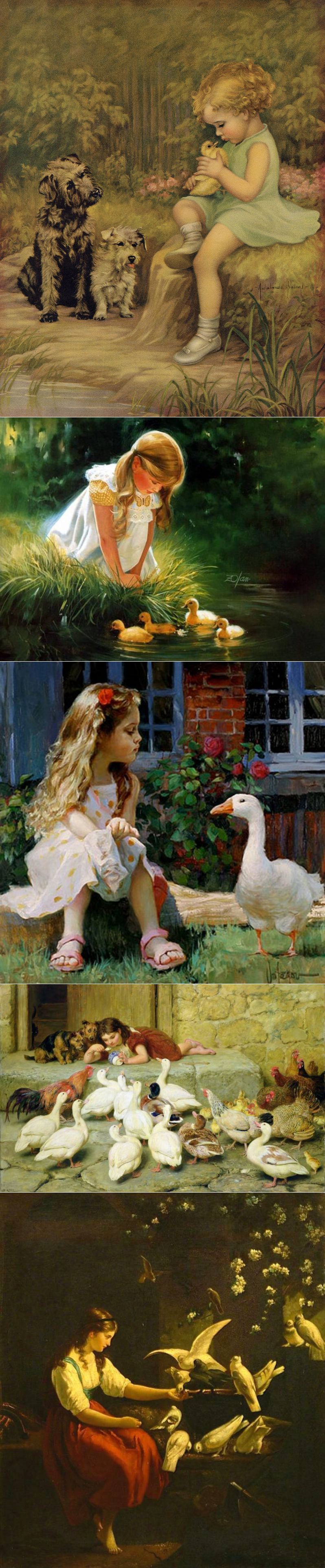 Детки и птицы в живописи. | Ах, как много в мире птиц.....