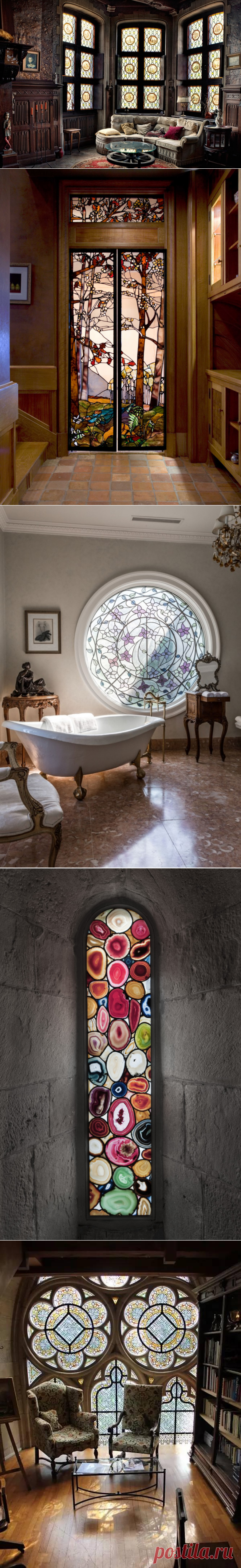 Витражные окна. Витраж в дверях. Витраж в интерьере