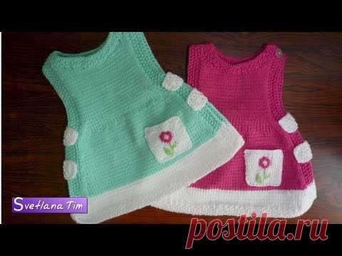Платье - накидка для девочек (3 - 18 месяцев) Вязание спицами # 365