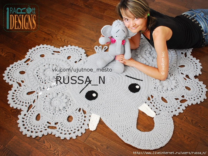 КОВРИК КРЮЧКОМ "СЛОН" ОТ ИРЫ РОТТ