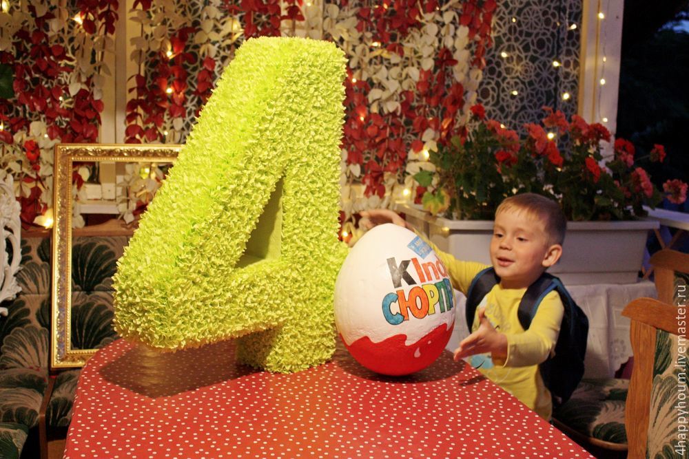 Создаем объемную цифру 4 на день рождения Хочу рассказать вам, как можно своими руками сделать цифру 4 на день рождения ребенку. Для этого не нужно владеть специальными навыками и умениями, необходимо только желание, отличное настроение, необходимые материалы и 18-20 часов свободного времени :) Для изготовления цифры нам понадобятся: картон; карандаш; линейка; малярный скотч; горячий клей; ножницы; канцелярский нож; небольшая веревочка;…