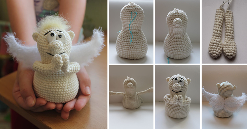Вяжем крючком обаятельного ангела с мягкими крыльями Предлагаю вам связать обаятельного Ангела. Он очень забавный и добрый. Этот Ангел обязательно принесет вам удачу! Ростик Ангела – 10 см. Необходимые материалы: Пряжа: YarnArt Джинс, цвет 03, немного Хлопок Травка от Камтекс для вязания крыльев. Крючок № 1,5. Проволока № 0,9 для ручек (2 кусочка по 16 см). Наполнитель. Шерсть для валяния, совсем капельку, для создания прически. Пластика для глазок.