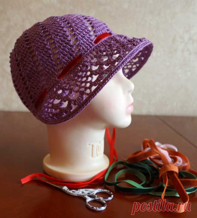 Шляпка а-ля капор (hat a la bonnet crochet) Летняя шляпка связана крючком пряжей ИРИС и украшена лентой Бархотка. Так же летнюю шляпку, но с полями можно посмотреть здесь https://www.youtube.com/playli...