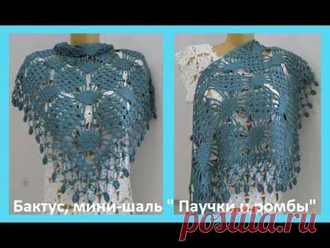 Бактус , мини - шаль "Паучки и ромбы".How to crochet a shawl (шаль 53)