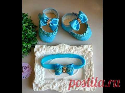 Faixa para bebê com laço de acetato - Como decorar sapatinhos de bebê