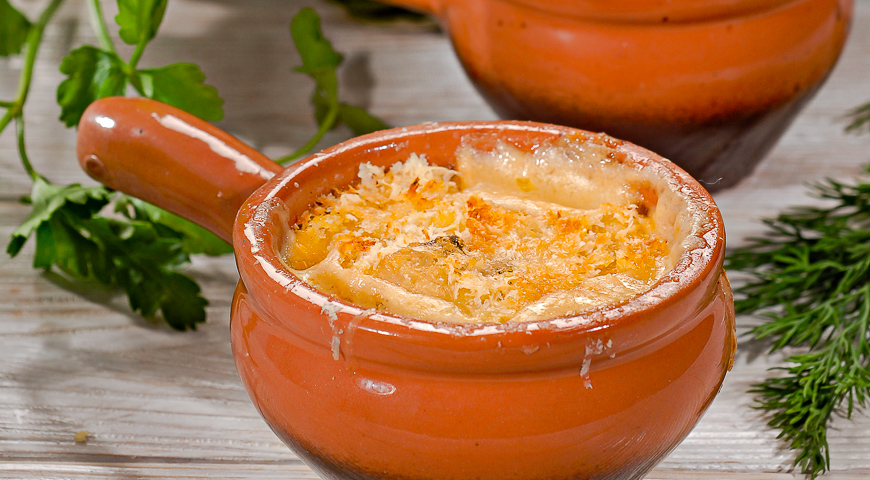 - Кокотницы натереть чесноком. Разложить в них подготовленную смесь. Тертый сыр перемешать с панировочными сухарями и присыпать жюльены сверху. Поставить в разогретую до 180°C духовку и запечь до образования румяной корочки, 5–7 мин. Подавать горячими.