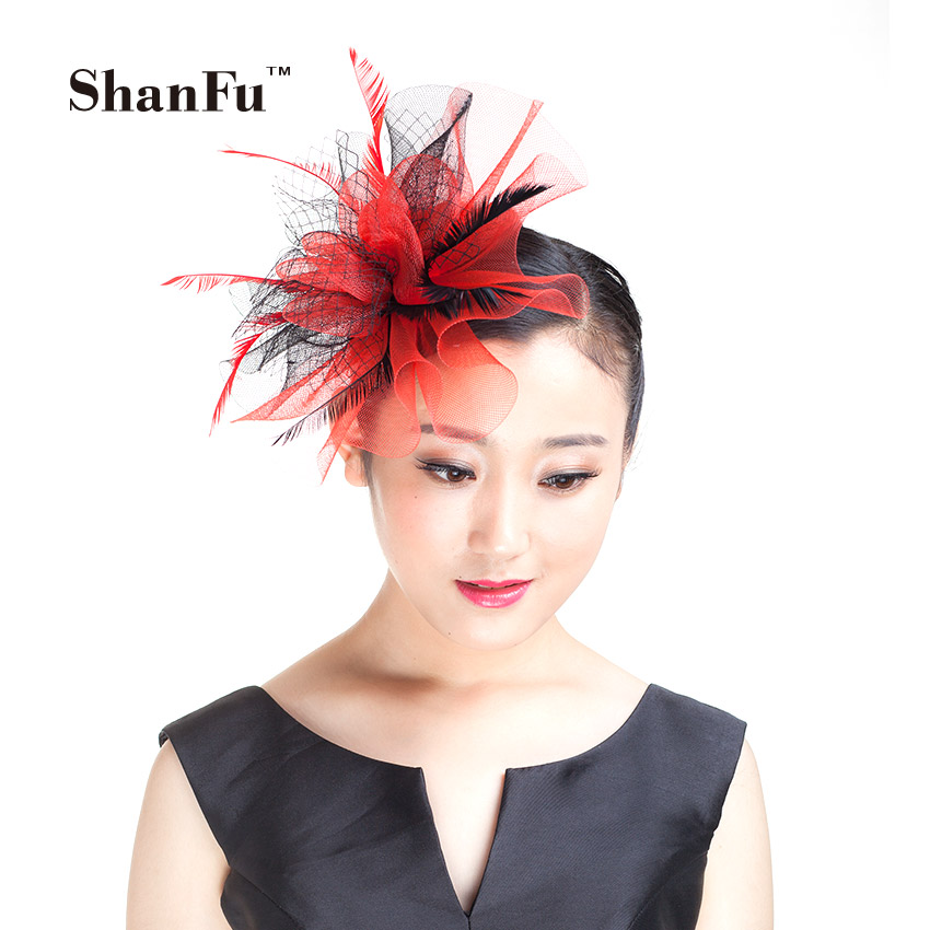 ShanFu Дамы Сетки Чародей Перо Fascinators Оголовье Birdcage Veil Зажим Для Волос для Свадьбы Церковь Чаепитие Красный SFD2811 купить на AliExpress