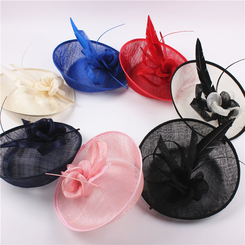 2016 Элегантная Дама Моды Стреловидные Перо Чародей Sinamay Шляпа Женщина Свадебный Цветок Sinamay Шляпу Оголовье Красный Розовый Королевский Синий купить на AliExpress