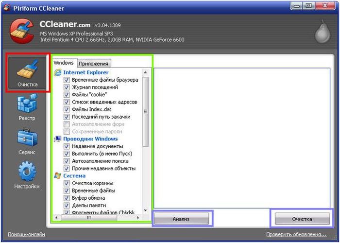 программа для очистки и настройки компьютера ССleаner[версия 3.04.1389]