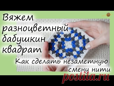 БАБУШКИН КВАДРАТ РАЗНОЦВЕТНЫЙ. КАК СМЕНИТЬ ЦВЕТ. ПОВОРОТНЫЕ РЯДЫ, БЕЗ ПЕТЕЛЬ ПОДЪЕМА|| НАЧНИ ВЯЗАТЬ!
