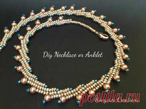 Beautiful Beaded Necklace or Anklet..( Herringbone Stitch) 👍🏻