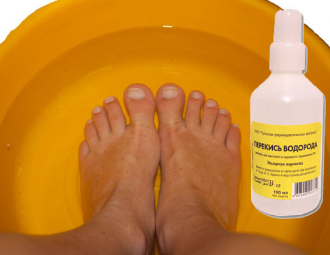 Итак..... Берём небольшую мисочку (такого размера, чтобы только поместились в неё ноги), наливаем 1,5 литра воды , чтобы была горяченькая, но не очень. Добавляем в воду 4 столовых ложки перекиси во…