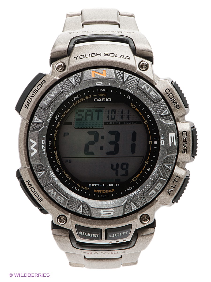 Часы PRO TREK PRG-240T-7E, CASIO Стильные и функциональные часы для тех, кто ценит качество и практичность. Полезный аксессуар для повседневного использования. Полностью автоматическая подсветка, устойчивый к низким температурам (-10 c), солнечная батарейка, цифровой компас, высотометр 10,000 м, график набора высоты, данные о восходе/закате солнца, барометр (260 / 1.100 hpa), термометр (-10c / +60c), память данных высотометра, функция мирового времени, функция секундомера,...