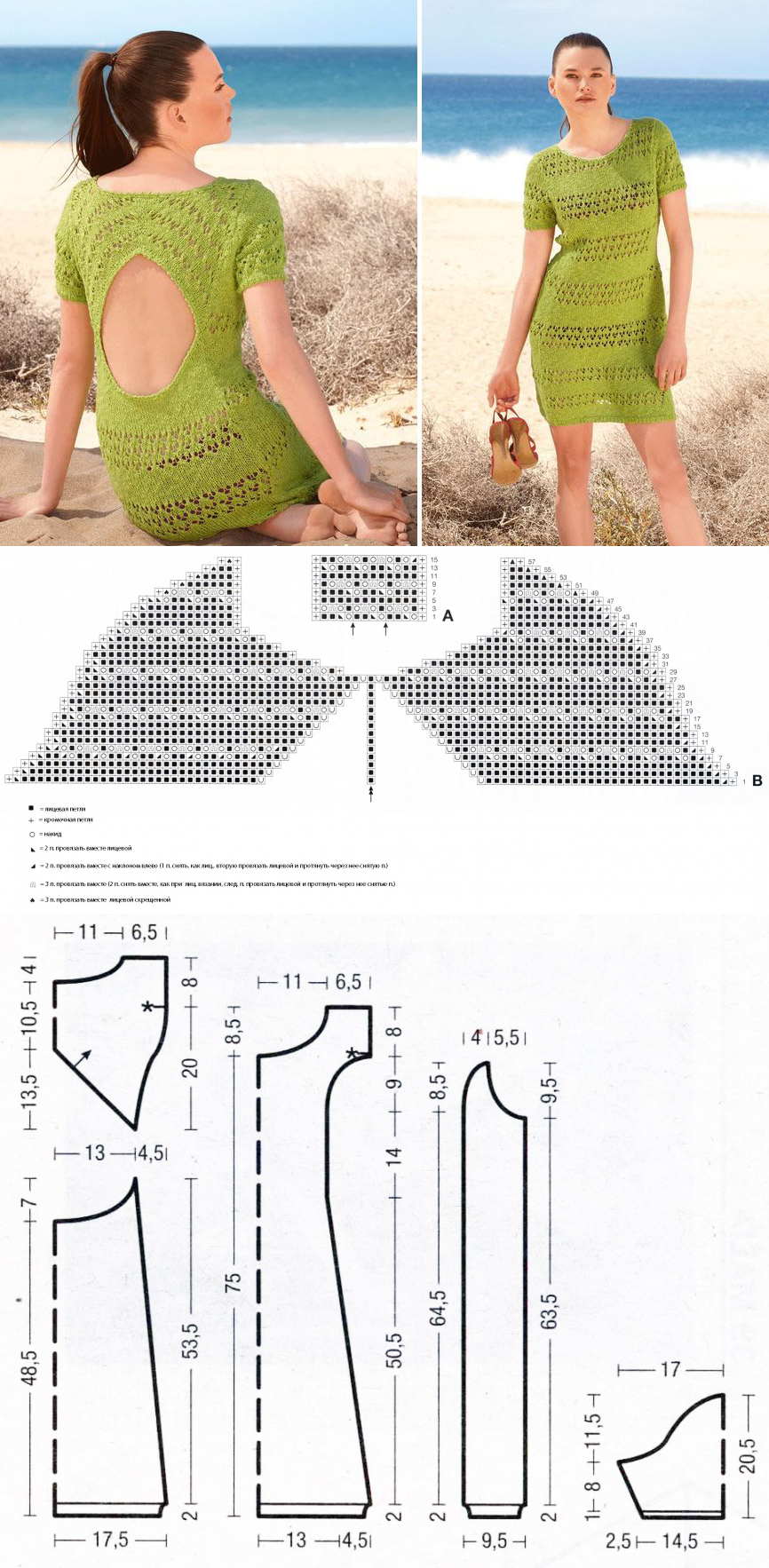 Платье с открытой спиной - схема вязания спицами. Вяжем Платья на Verena.ru