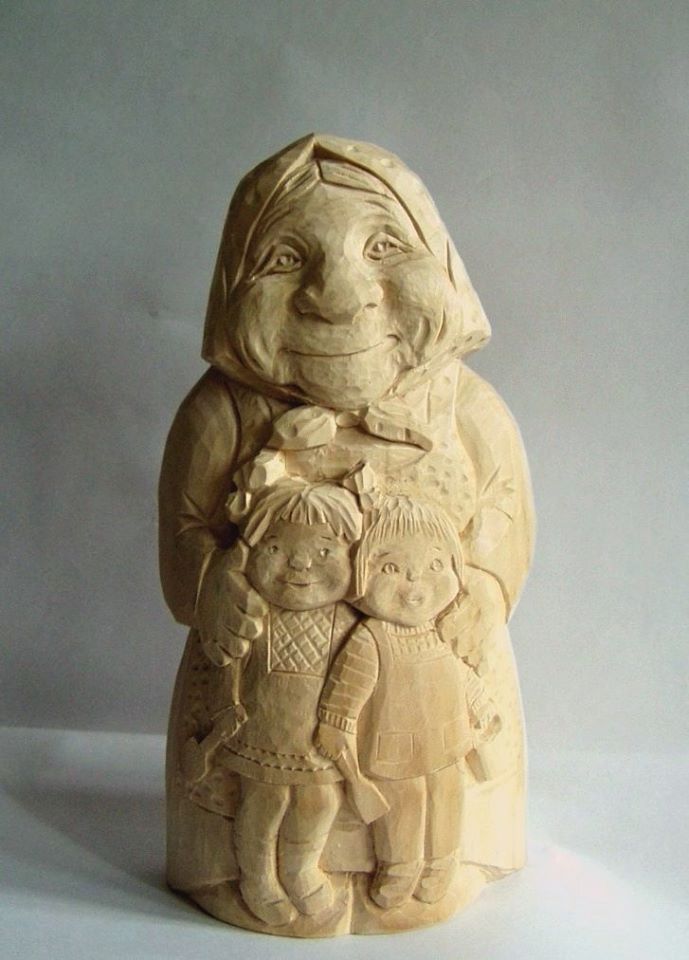 Бабушка с внучками,высота 25 см.2017 Автор: Л. Блазнина