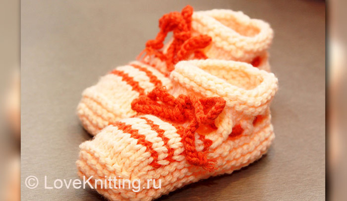 Пинетки для малыша - Эфария Предлагаем вам связать с нежностью и любовью чудесные пинетки для первых шагов своего малыша. Размер: 9 месяцев ВАМ ПОНАДОБИТСЯ 50 г розовой и немного оранжевой пряжи (100% акрил, 100 г/50 м); спицы № 3,25; крючок № 4. УЗОРЫ Платочная вязка: лиц. р. и изн. р. – лиц. п.; Лицевая гладь: лиц. р. – лиц. п.,