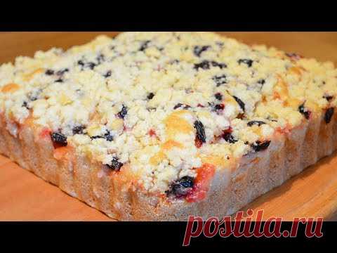Пирог на кефире (или кислом молоке) с ягодами и фруктами БЫСТРО БЕЗ МИКСЕРА