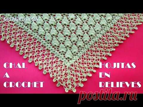 Chal triangular a crochet HOJAS PEQUEÑAS EN RELIEVES paso a paso en video tutorial