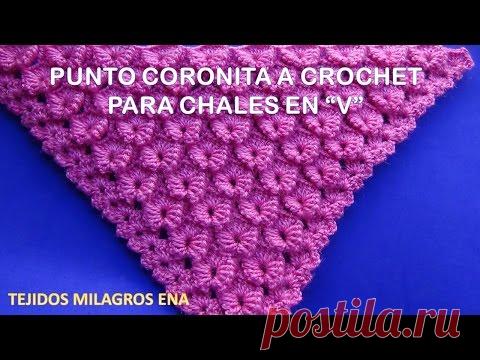 Chal o Shawl paso a paso en Punto Coronita en V tejido a crochet