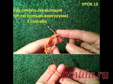 Уроки вязания крючком/ Crochet and knitting/ Скользящая петля/ Кольцо амигуруми/ Sliding loop