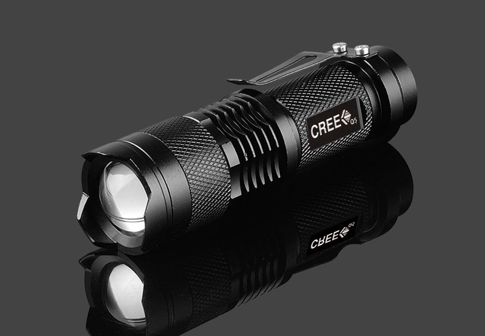 Фонарик имеет водонепроницаемую конструкцию, маленькие размеры и легко помещается в ладонь. В качестве светового элемента используется светодиодный модуль CREE Q5 LED, который обеспечивает световой поток в 2000 люменов. Корпус выполнен из алюминия и имеет регулировку фокусного расстояния. US $3.35 / шт.