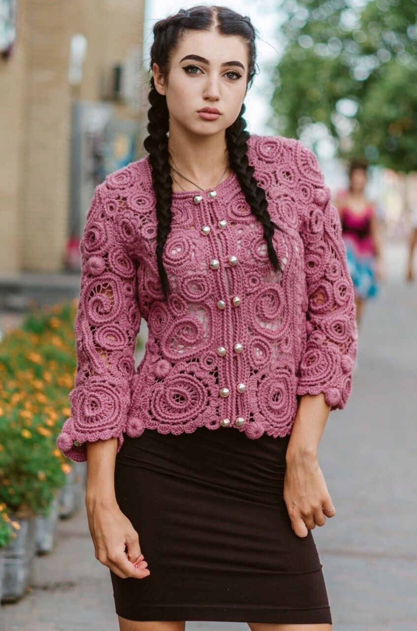 Жакет ' Розовая бабочка ' Купить или заказать Жакет ' Розовая бабочка ' в интернет-магазине на Ярмарке Мастеров. Жакет связан крючком в технике ирландского кружева . Моя авторская работа . Застёгивается на золотых пуговках . С пояском . Жакет приталенный . Под заказ свяжу любой размер .