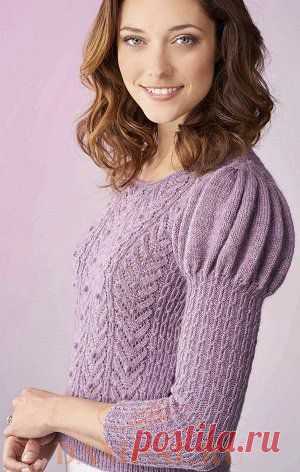 ПЕТЕЛЬКА К ПЕТЕЛЬКЕ. Ажурная кофточка Сиреневая ажурная кофточка связана рисунком, напоминающим сердечки, и украшена буфами на рукавах. Описание кофточки от дизайнера Amanda Jones переведено из журнала “The Knitter”. Размеры: 8-10 (12…