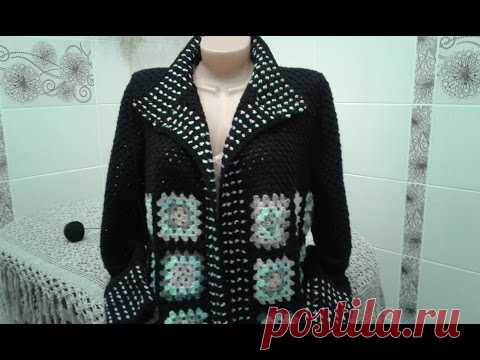 Кардиган из квадратных мотивов. Часть 6. Планка, воротник. Knitting women's cardigan. - YouTube