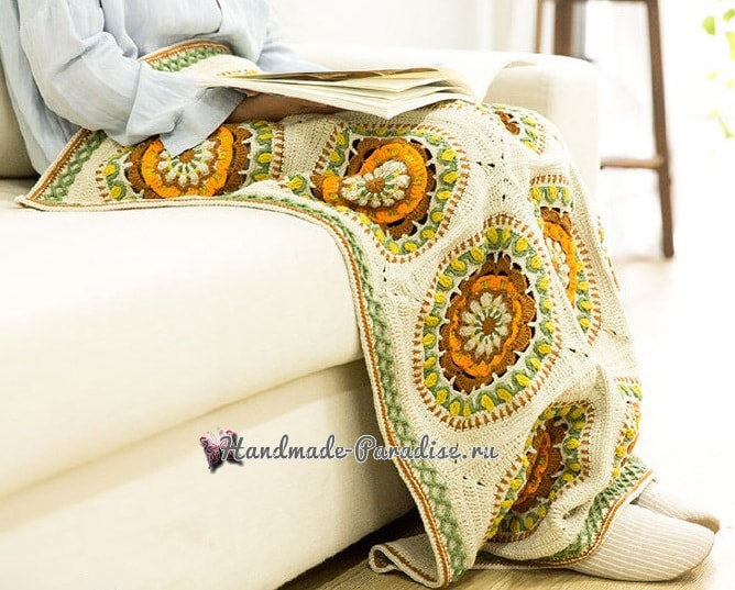 Плед крючком мотивами «мандала». Схемы - Handmade-Paradise