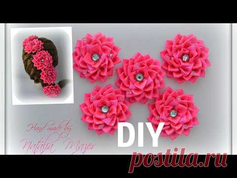 Цветы из атласных лент в прическу. Своими руками. Канзаши. Мастер класс./ Kanzashi flower tutorial