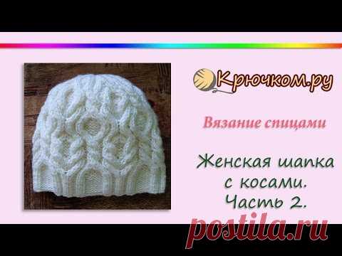 Женская шапка с косами. Часть 2 (Knitting. Women's hat this braids. Part 2)