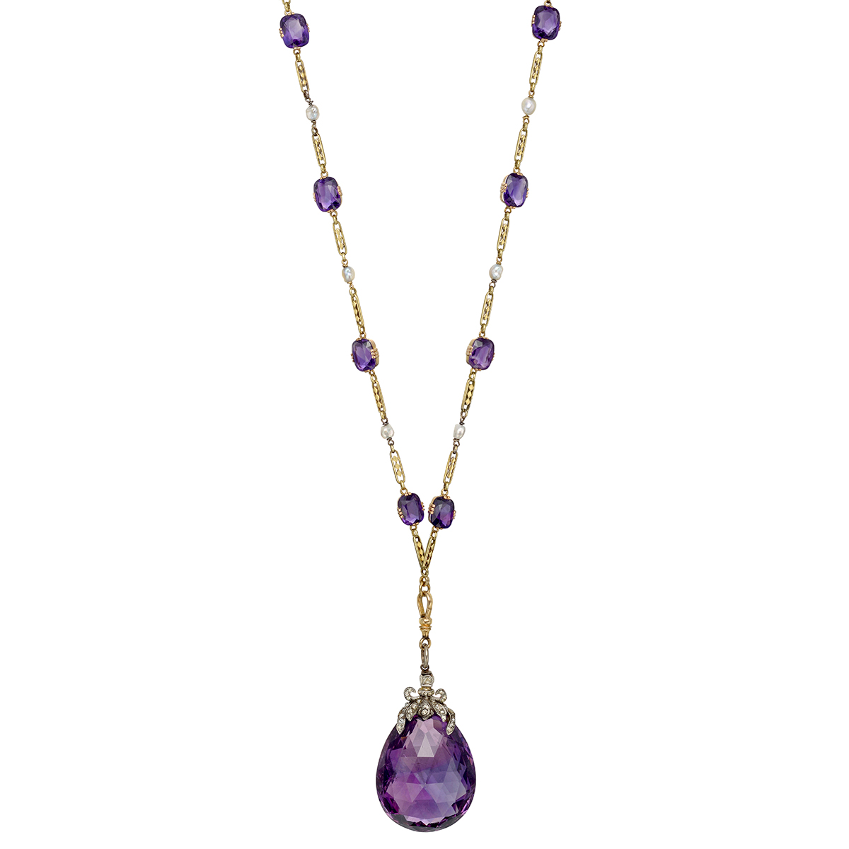 Antique Russian Amethyst Drop Long Necklace | Betteridge