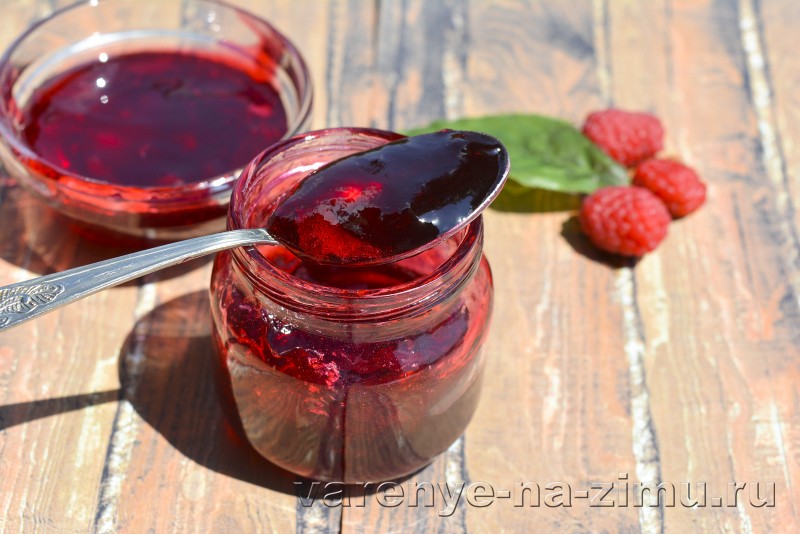 Малиновый джем - рецепт на зиму без косточек Ингредиенты: 200 грамм малины (можно использовать малину свежую или же замороженную), 200 грамм сахарного песка Выход из указанного кол-ва ингредиентов - 140-150 грамм Из 1 кг малины и 1 кг